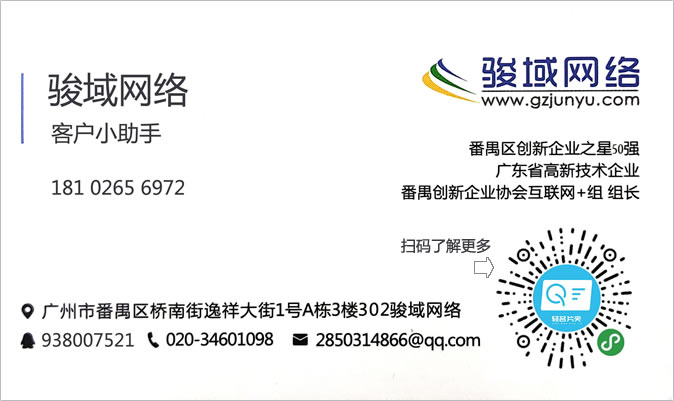 廣州駿域網(wǎng)絡(luò)科技有限公司成立于2005年,是一支由眾多具有多年實(shí)踐經(jīng)驗(yàn)的專業(yè)人士組成的高新技術(shù)團(tuán)隊(duì),專為企業(yè)提供網(wǎng)站建設(shè)、全網(wǎng)營(yíng)銷、郵箱等服務(wù),我們擁有嚴(yán)謹(jǐn)?shù)某绦蜷_發(fā)人員、專業(yè)的美工設(shè)計(jì)、隨時(shí)為您效勞的售后服務(wù)人員,團(tuán)隊(duì)人數(shù)達(dá)一百多人。目前我們已經(jīng)榮幸的為廣州眾多知名企業(yè)提供了包括網(wǎng)站建設(shè)、手機(jī)網(wǎng)站、小程序、企業(yè)軟件開發(fā)等多種基于互聯(lián)網(wǎng)技術(shù)的服務(wù)。 通過長(zhǎng)期積累,駿域網(wǎng)絡(luò)目前已經(jīng)擁有50000多家客戶。
